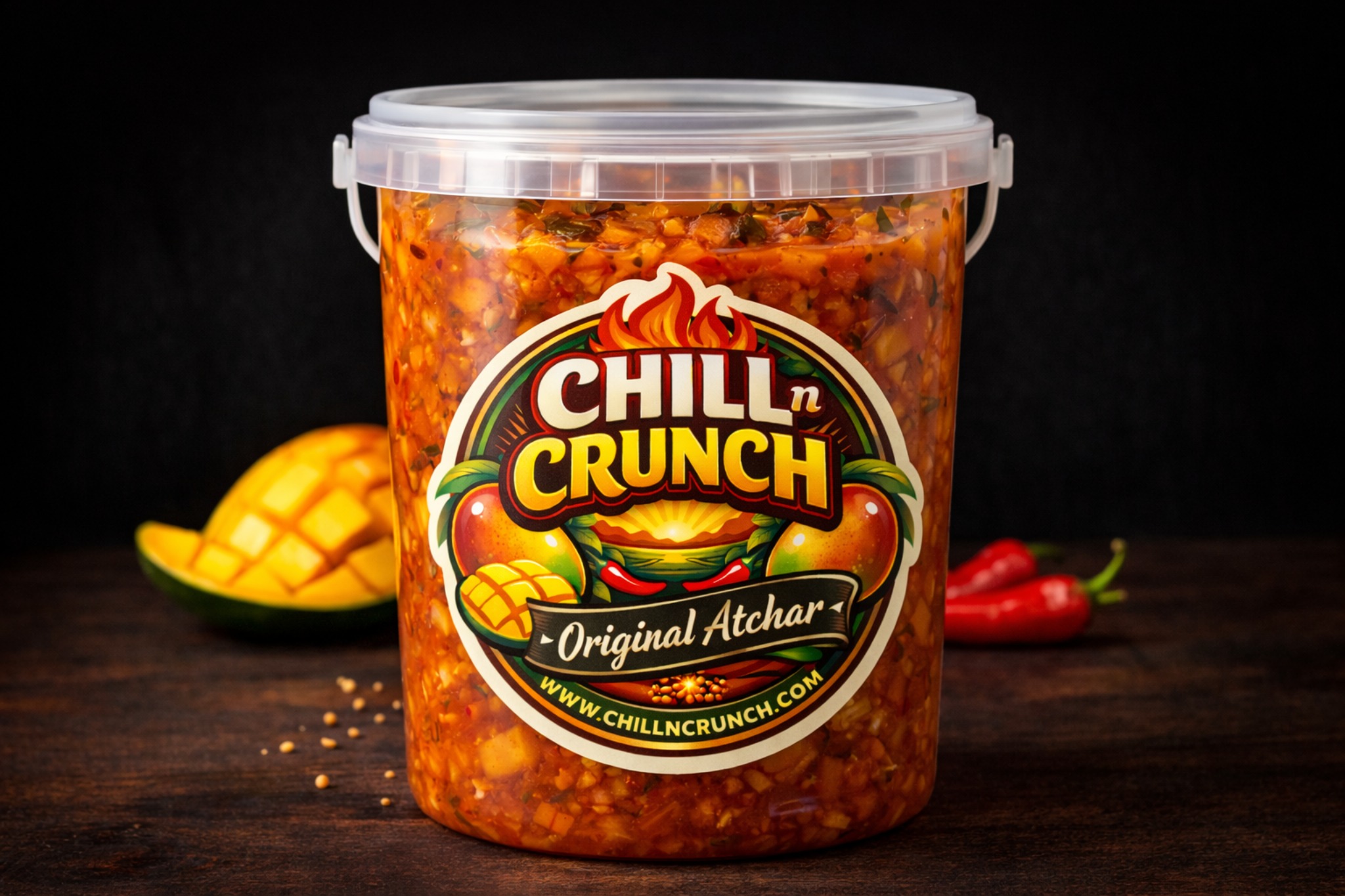 ChillnCrunch Original Atchar is a mango-based atchar produced by ChillnCrunch Haven, a division of Morwa Nku Holdings (Pty) Ltd. It’s bold, crunchy and proudly South African - perfect with pap, stew, braai, mogodu, bogobe, chakalaka and more.